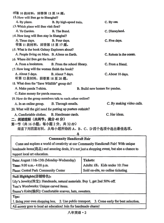 初中期末試題