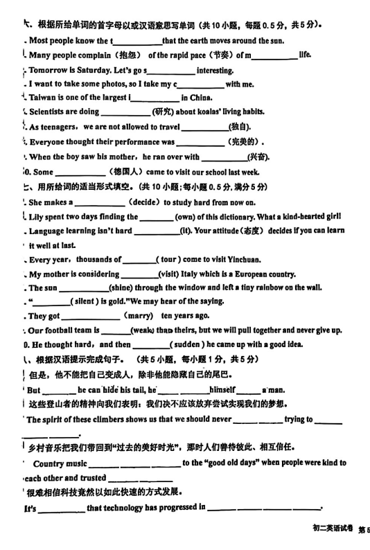 初中期末試題