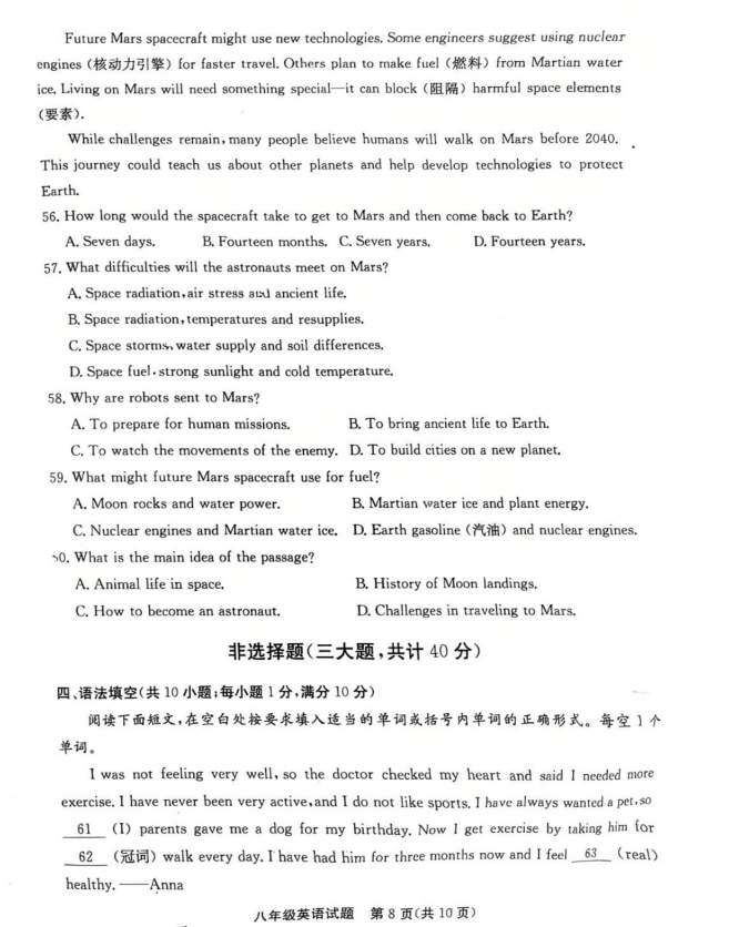 2024-2025學年山東聊城東昌府區八年級下學期英語期末真題(圖片版)(8)