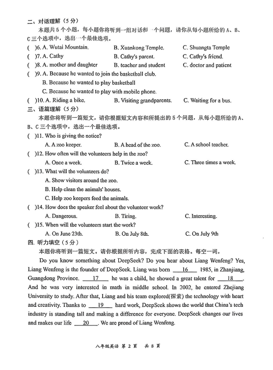 2024-2025學年山西大同天鎮縣八年級下學期英語期末真題(圖片版)(2)