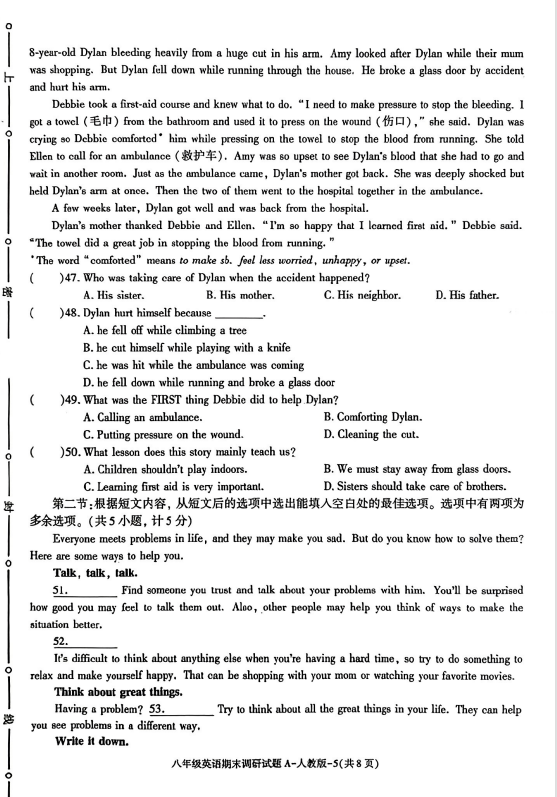 2024-2025學年陜西寶雞千陽縣水溝鎮燕及中學八年級下學期英語期末真題(圖片版)(5)