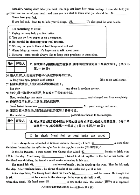 2024-2025學年陜西寶雞千陽縣水溝鎮燕及中學八年級下學期英語期末真題(圖片版)(6)