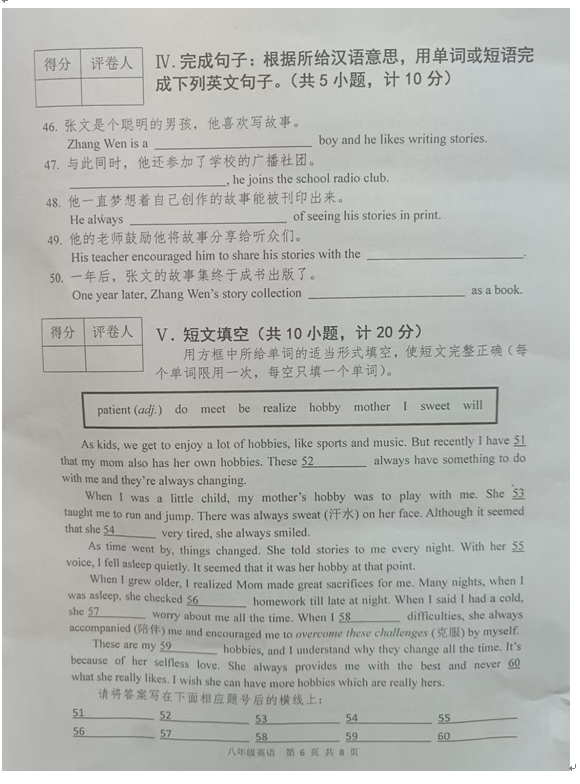 2024-2025學年陜西商洛商南縣八年級下學期英語期末真題(圖片版)(5)