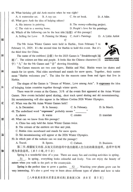 2024-2025學年陜西咸陽永壽縣上邑中學八年級下學期英語期末真題(圖片版)(6)