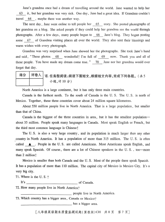 2024-2025學年陜西咸陽永壽縣上邑中學八年級下學期英語期末真題(圖片版)(8)