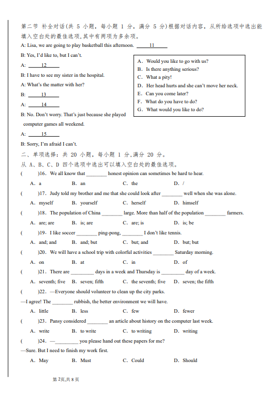 2024-2025學年西藏拉薩墨竹工卡縣八年級下學期英語期末真題(圖片版)(2)