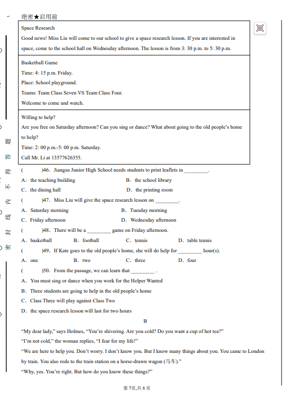 2024-2025學年西藏拉薩墨竹工卡縣八年級下學期英語期末真題(圖片版)(5)
