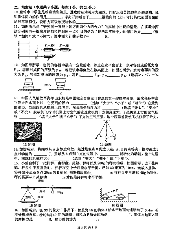 2024-2025學年遼寧盤錦興隆臺區八年級下冊物理期末真題(圖片版)(3)