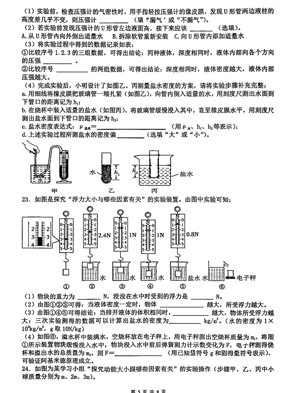 2024-2025學年遼寧盤錦興隆臺區八年級下冊物理期末真題(圖片版)(5)