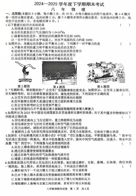中考網(wǎng)整理了關(guān)于2024-2025學(xué)年遼寧沈陽康平縣八年級下冊物理期末真題(圖片版),希望對同學(xué)們有所幫助,僅供參考。
