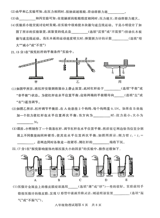 2024-2025學年山東德州臨邑縣八年級下冊物理期末真題(圖片版)(6)