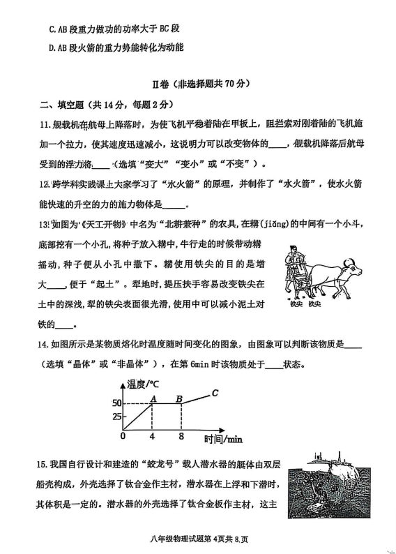 2024-2025學年山東東營廣饒縣八年級下冊物理期末真題(圖片版)(4)