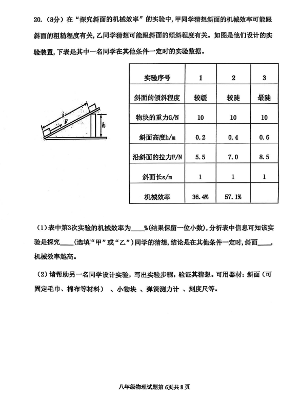 2024-2025學年山東東營廣饒縣八年級下冊物理期末真題(圖片版)(6)