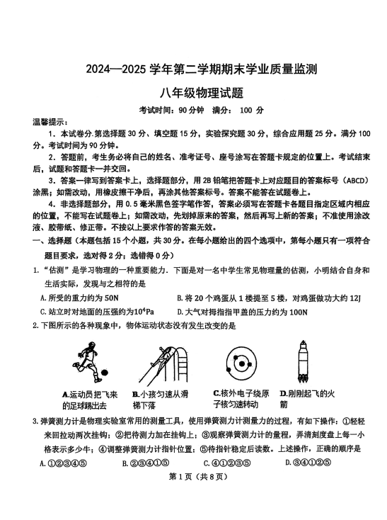 中考網整理了關于2024-2025學年山東惠民八年級下冊物理期末真題(圖片版),希望對同學們有所幫助,僅供參考。