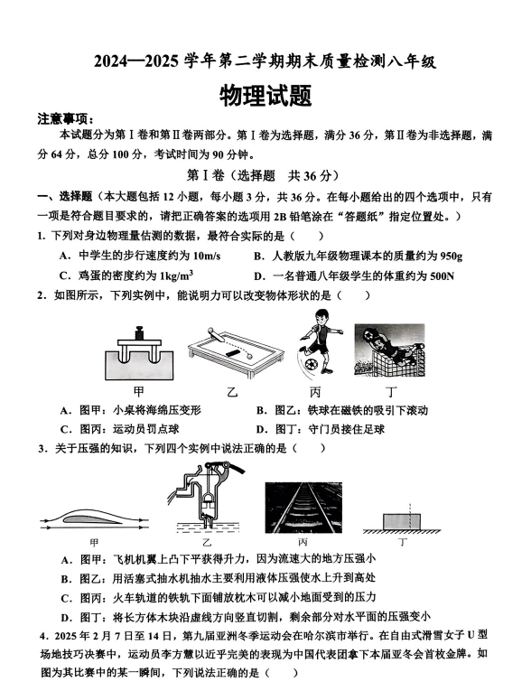 中考網整理了關于2024-2025學年山東樂陵八年級下冊物理期末真題(圖片版),希望對同學們有所幫助,僅供參考。
