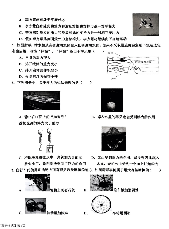 2024-2025學年山東樂陵八年級下冊物理期末真題(圖片版)(2)
