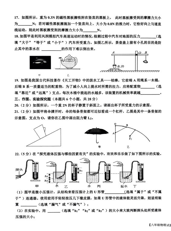 2024-2025學年山東樂陵八年級下冊物理期末真題(圖片版)(5)