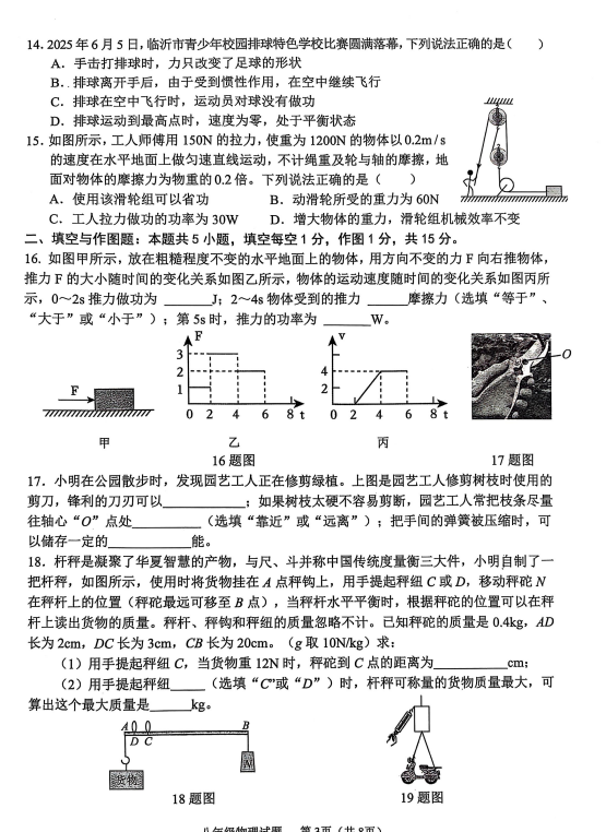 2024-2025學年山東臨沂郯城縣八年級下冊物理期末真題(圖片版)(3)