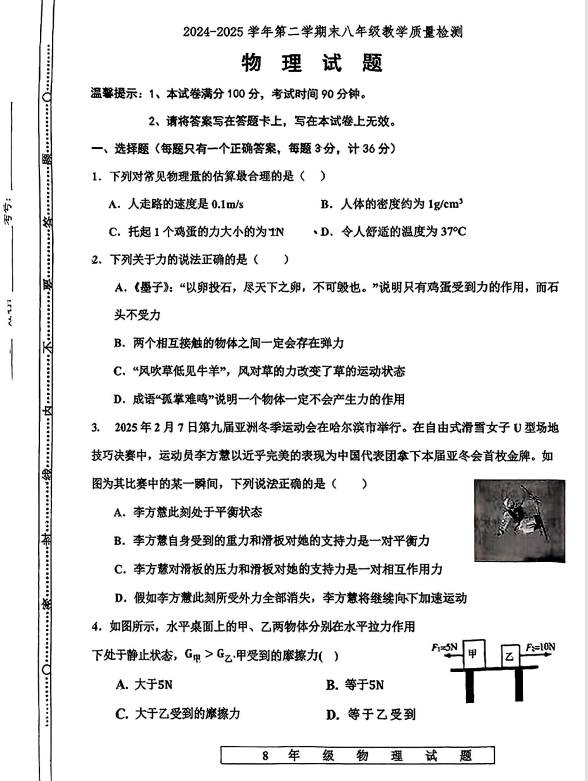 中考網(wǎng)整理了關(guān)于2024-2025學(xué)年山東寧津縣八年級(jí)下冊(cè)物理期末真題(圖片版),希望對(duì)同學(xué)們有所幫助,僅供參考。