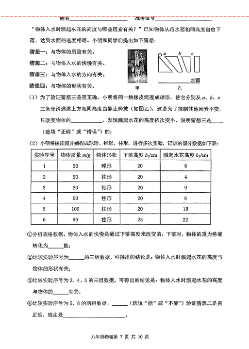 2024-2025學年山東大同天鎮縣八年級下冊物理期末真題(圖片版)(7)