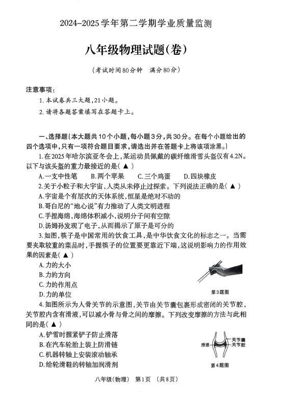中考網整理了關于2024-2025學年山西晉城陽城縣八年級下冊物理期末真題(圖片版),希望對同學們有所幫助,僅供參考。
