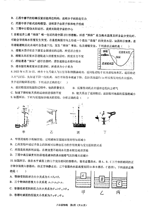 2024-2025學年陜西西安三中八年級下冊物理期末真題(圖片版)(2)